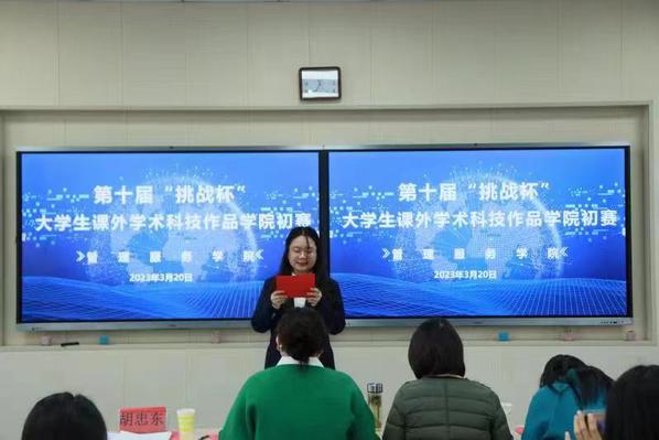 为深入学习宣传和贯彻党的二十大精神,切实推进beat365官网第十届“挑战杯”竞赛工作,进一步引导管理服务学院学习努力培养科学精神和创新意识,3月20日我院在308教室举办了第十届“挑战杯”全国大学生课外学术科技作品竞赛选拔赛。院长陈颖及评委老师、项目指导老师出席活动,参赛选手及学生代表50余人参加活动。
