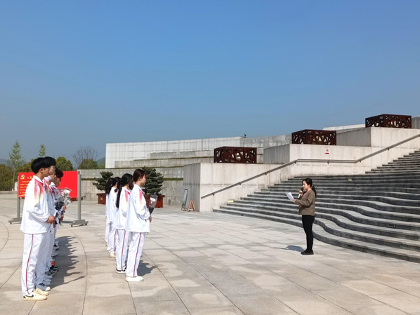 上午9:30,师生们怀着无比崇敬的心情来到了安庆市烈士陵园,在巍然屹立的烈士纪念碑前,全场师生庄严肃立。在明媚的阳光下,活动开始展开。本次活动共分为五个环节。第一个环节由带队老师介绍了本次活动的目的与意义。带领学生了解到清明祭祀祖先不仅是为了慎终追远,根本目的还在于教育今人。我们祭奠革命英烈也不仅是为了单纯地回顾历史,更是为了能够在缅怀中凝聚前行力量。
