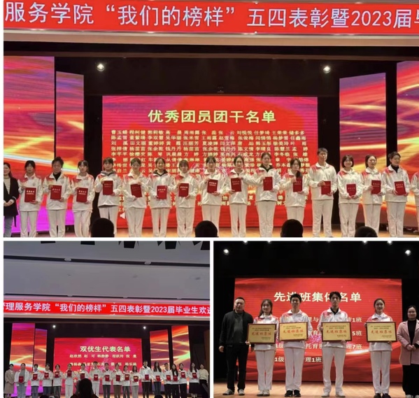 为深入学习宣传贯彻党的二十大精神,纪念五四运动104周年,继承和弘扬“五四精神”,展示管理服务学院青年朝气蓬勃、活力向上的精神风貌,同时欢送2023届毕业生,4月25日晚,管理服务学院在幼儿实训中心举办了“我们的榜样”五四表彰暨2023届毕业生欢送会。院党总支书记、院长陈颖携总支班子成员及教师代表出席活动。