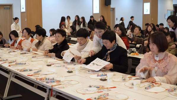 诗词是中华文化的瑰宝,经典诗词,吟咏着底蕴深厚的民族文化。学生表演的情景剧《诗词里的中国》,带我们穿越历史,品味古典文学中的精华。团扇是蕴含我国传统文化的一种特殊艺术形式,造型简约,现场的师生们手持团扇,蘸取颜料,体验着手工制作带来的快乐。通过巧手,一柄柄清新淡雅的团扇渐渐展现,大家纷纷举起亲手绘制的团扇合影留念。
