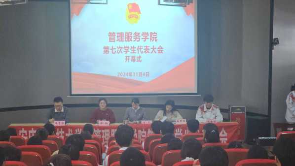 11月4日,管理服务学院第七次学生代表大会在三号教学楼216教室召开。院学生工作负责人、团总支书记、团总支副书记及各分团代表等共60余人参加大会。