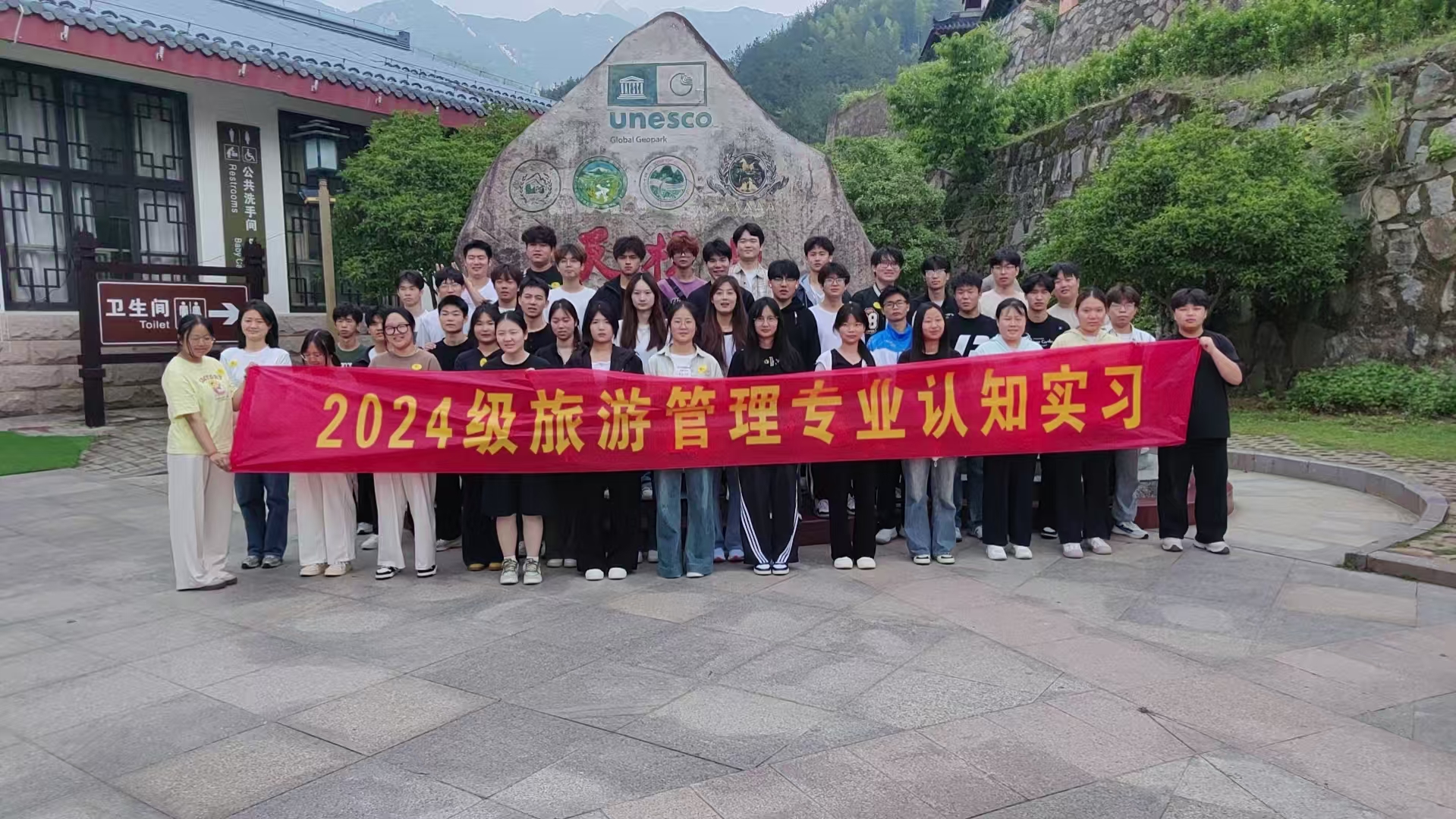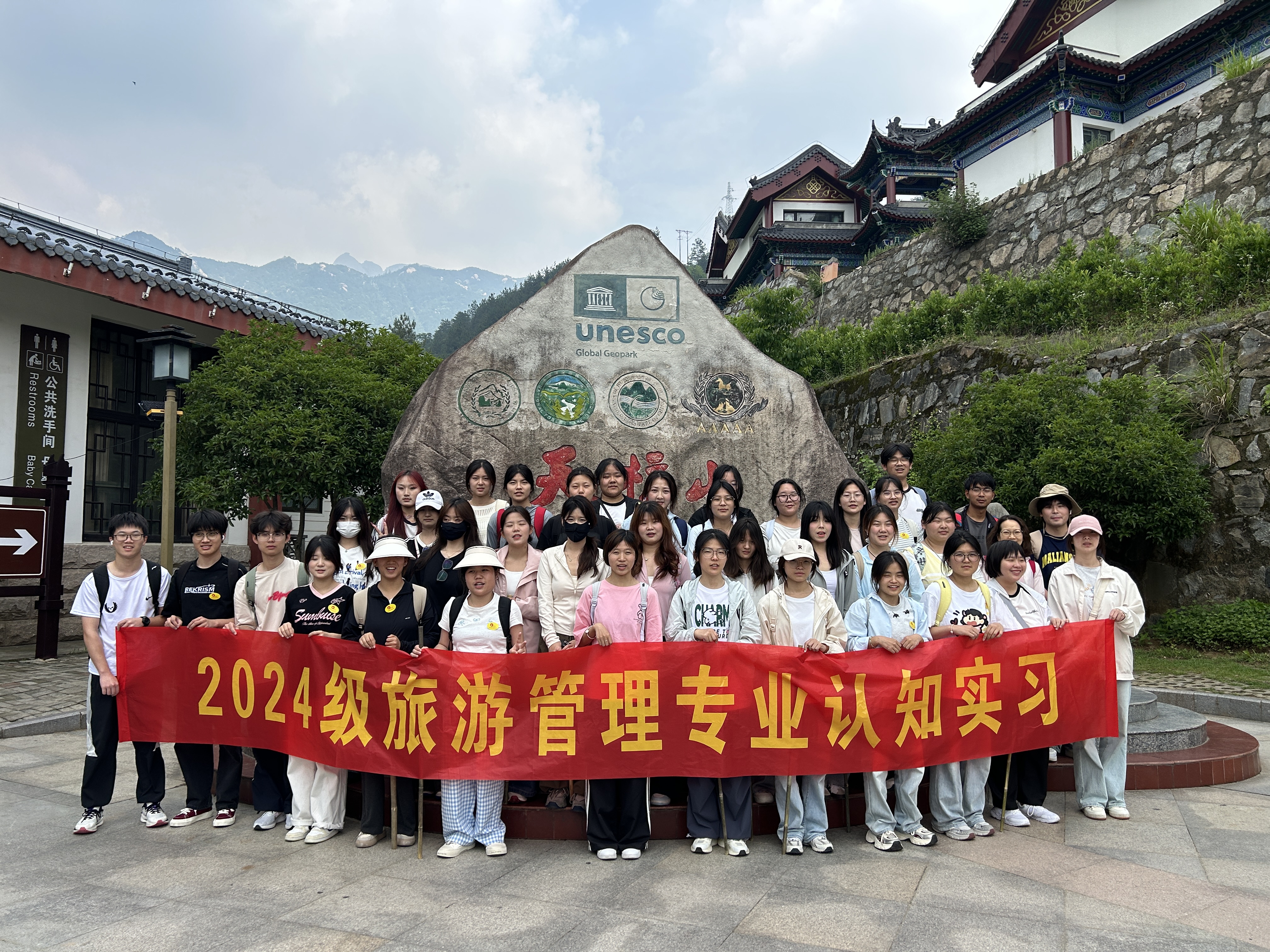 为深入贯彻 2024 级旅游管理专业人才培养方案,切实增强学生对导游服务工作以及旅游景区服务的感性认知,充分激发学生专业学习热情,紧密结合《导游基础》《导游实务》《模拟导游》《旅游景区服务与管理》等课程实践教学需求,5 月 24 日,管理服务学院组织旅游管理专业 2024 级全体学生赴国家 5A 级景区—天柱山开展认识实习,旅游管理专业教师及辅导员老师参加了此次活动。