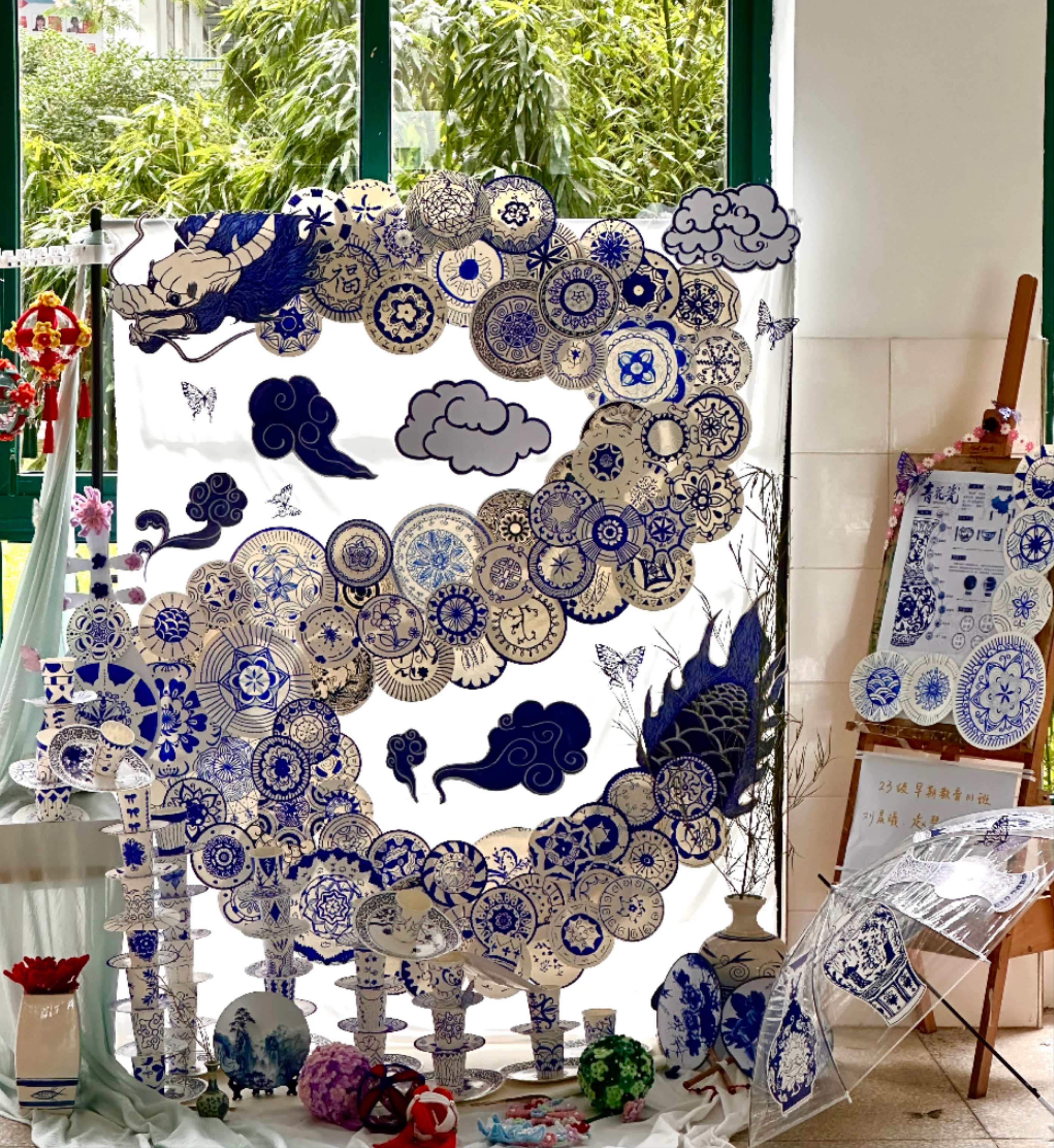 6 月 11 日,beat365中文官方网站管理服务学院 2023 级早教专业 “匠心育幼・非遗新生” 环创展精彩启幕。在汪俊老师指导下,展览以《手工与托育机构环境创设》课程为载体,将剪纸、扎染等十二项非遗技艺融入早教环创设计,通过沉浸式场景让传统文化在童趣中焕发新生。