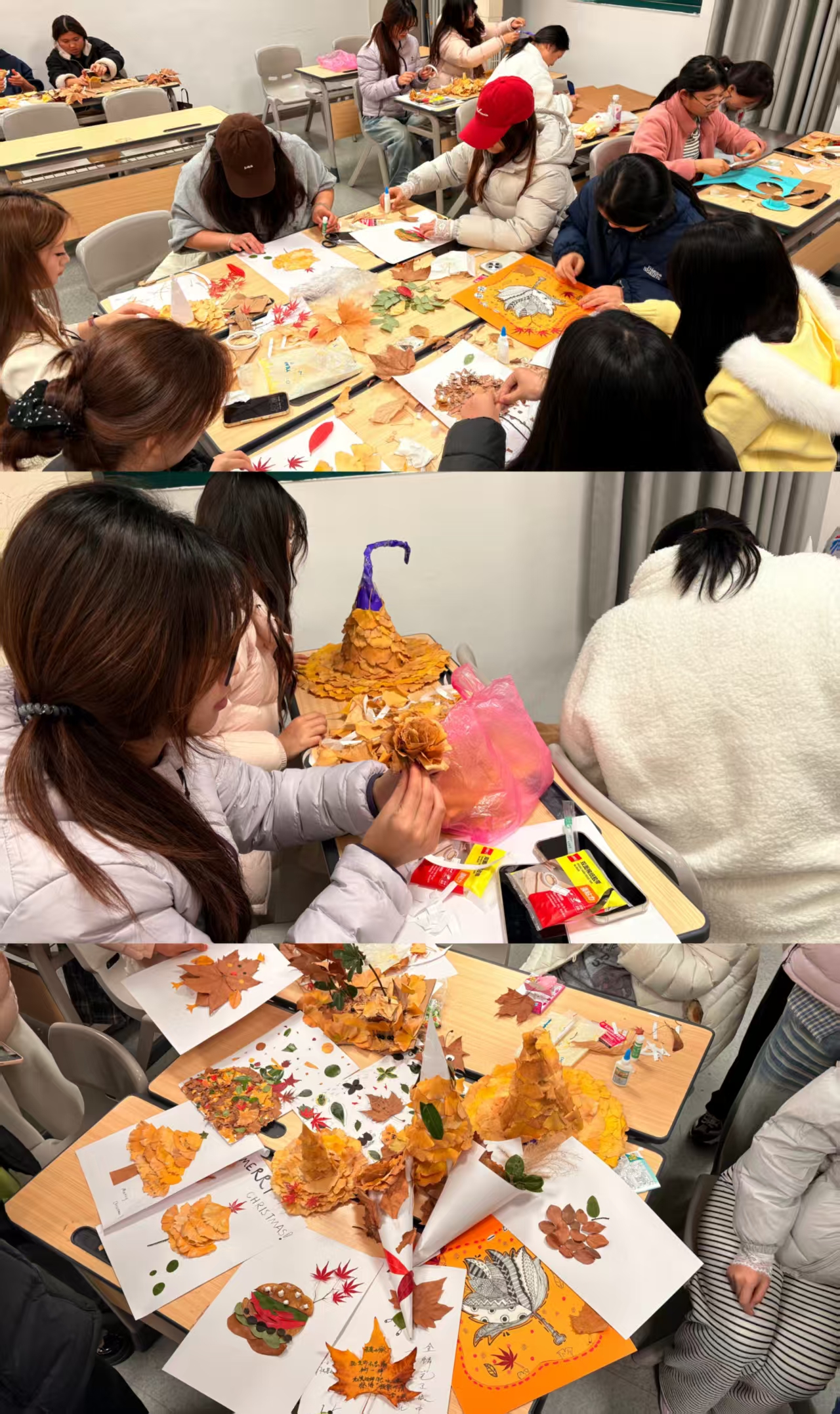 同学们围绕“幼儿艺术启蒙与手工创作”主题,开展树叶贴画、粘土塑形等活动。在动手实践中,同学们不仅锻炼了精细操作与审美能力,更深入理解如何通过艺术活动激发幼儿创造潜能,为成长为“懂孩子、有巧思”的托育人才奠定基础。