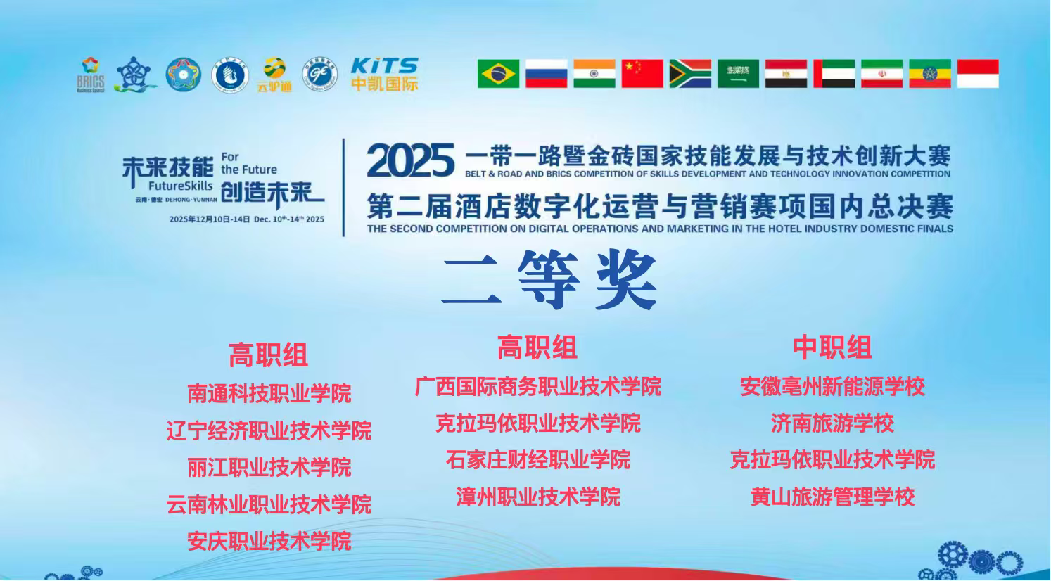 近期,2025 年 “一带一路” 暨金砖国家技能发展与技术创新大赛“酒店数字化运营与营销”、“幼儿照护”赛项全国总决赛相继落幕,beat365官网学子凭借扎实的专业功底、出色的实践能力与创新思维,斩获殊荣。