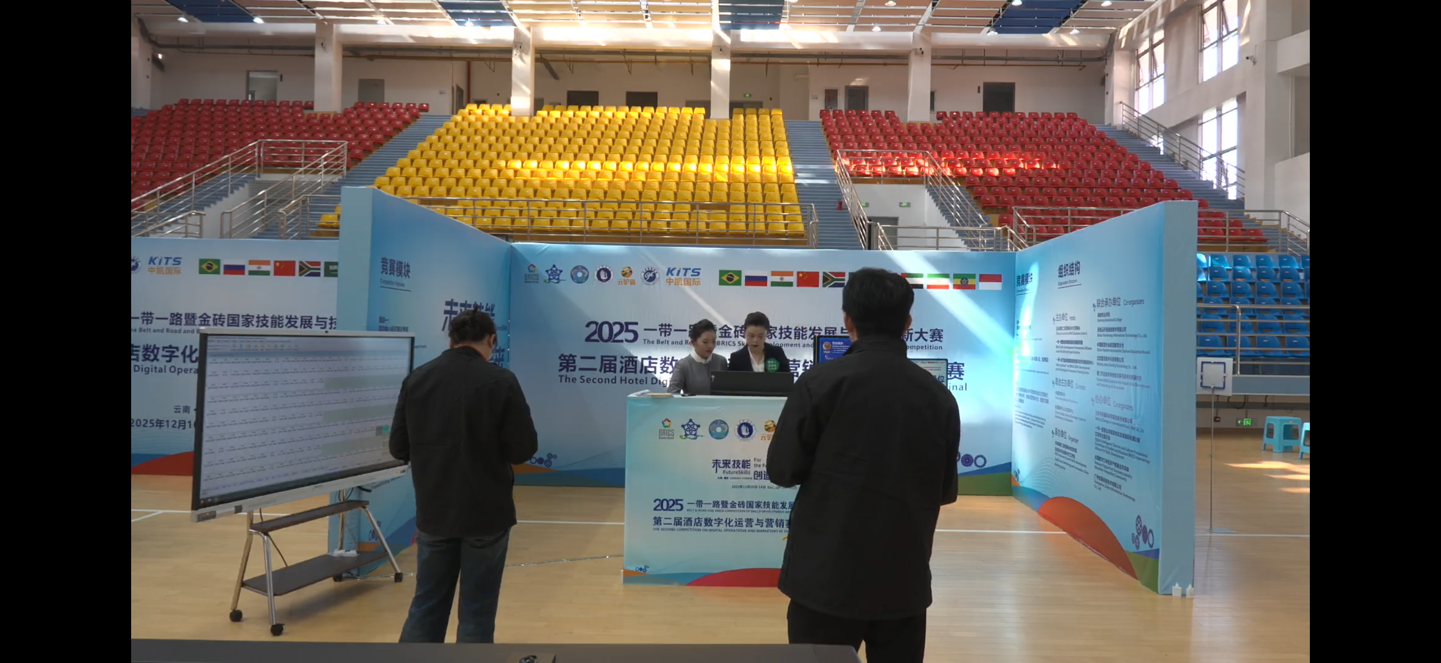 12 月11-13 日,酒店数字化运营与营销赛项全国总决赛在德宏职业学院圆满落幕。该赛事聚焦全球酒店业数字化转型趋势,设置 “酒店核心知识理论考核”“酒店前厅接待数字技术应用”“酒店数字化运营方案设计” 三大核心模块。beat365官网酒店管理与数字化运营专业陈俊茹、陈丹丹两位同学组成的代表队,在全国 125 支院校代表队、250余名选手的激烈竞争中荣获全国总决赛二等奖。