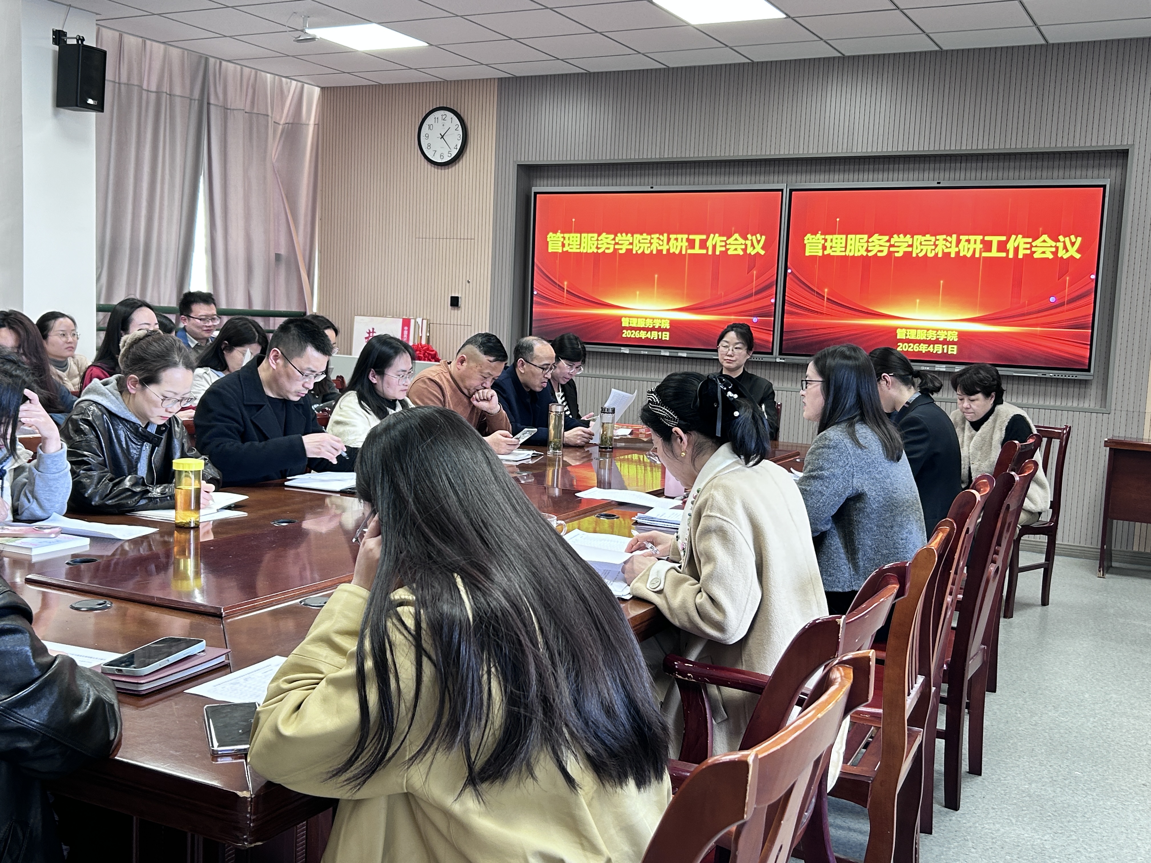 4月1日,管理服务学院在3号教学楼314会议室召开科研专题工作会议,全体教职工参会,党总支书记、院长陈颖主持会议。