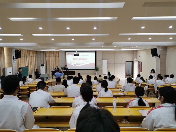 王业长作了题为《民法典解读》的法制宣传讲座。他从《民法典》的意义、基本概况、核心理念、对依法执政的影响等几个方面向师生们进行了解读。他还结合典型案例就民法典的亮点,与同学们学习和日常生活密切相关的法律规定进行了着重分析讲解,重点突出民法典新设立的“自甘风险”、“居住权”等规则和倡导的社会主义核心价值观理念。案例紧密结合日常生活实际,深入浅出,同学们听得津津有味。