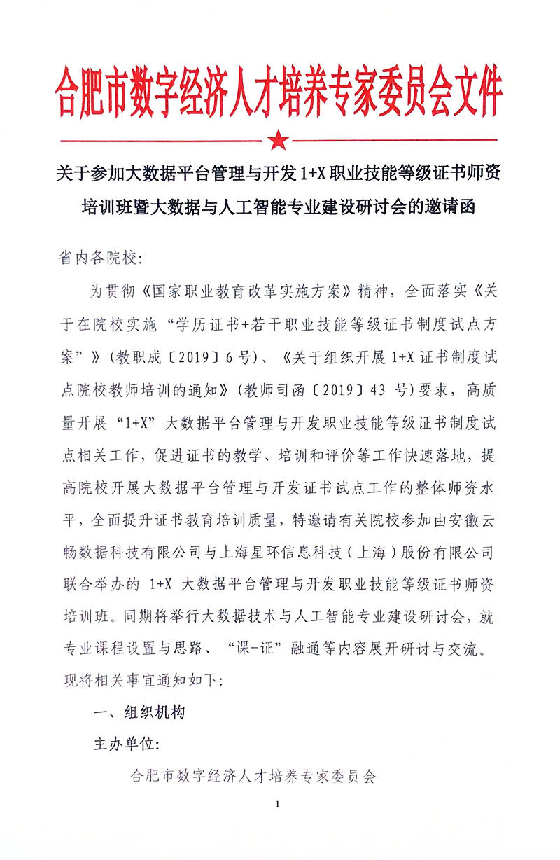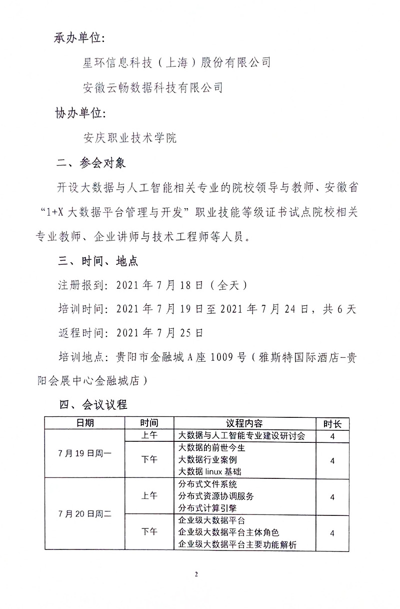 7月18日至25日,beat365官网参与协办的“1+X大数据平台管理与开发”证书项目线下师资培训暨大数据技术与人工智能专业建设研讨会在贵阳举行。此次1+X证书师资培训由星环信息科技(上海)股份有限公司和安徽云畅数据科技有限公司承办并提供技术支持。作为会议协办单位,beat365官网派出3位教师参加此次会议。