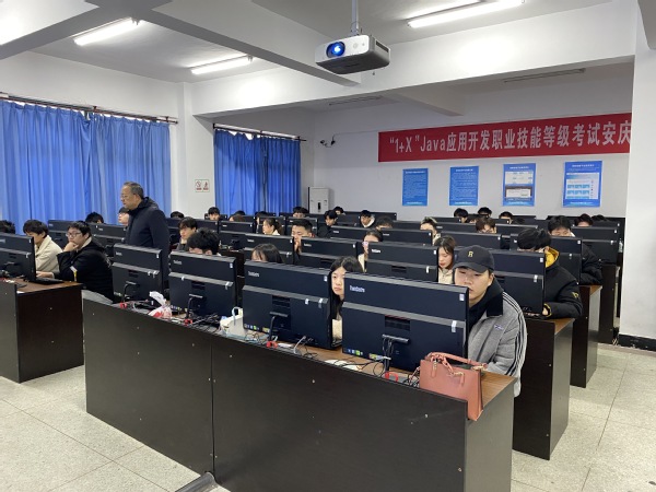 12月25日上午,“1+X”Java应用开发职业技能等级证书考试在图文信息中心502实训室顺利举行,来自信息技术学院计算机应用技术等专业55名学生参加了考试。副校长谭维奇到考试现场巡视,实验实训中心主任李进恩、信息技术学院院长疏国会巡查了考前准备和考试过程。
