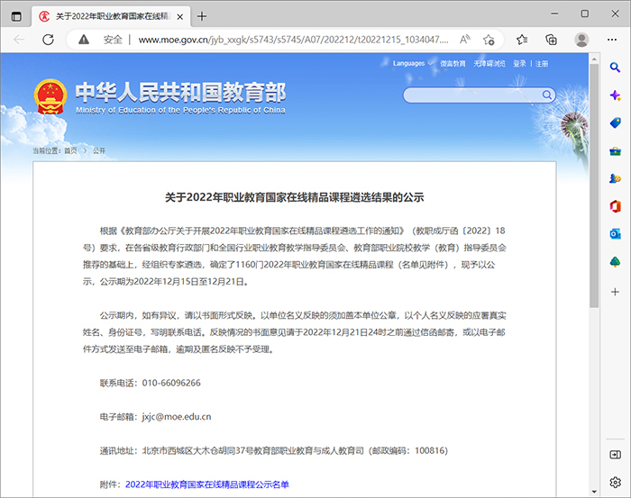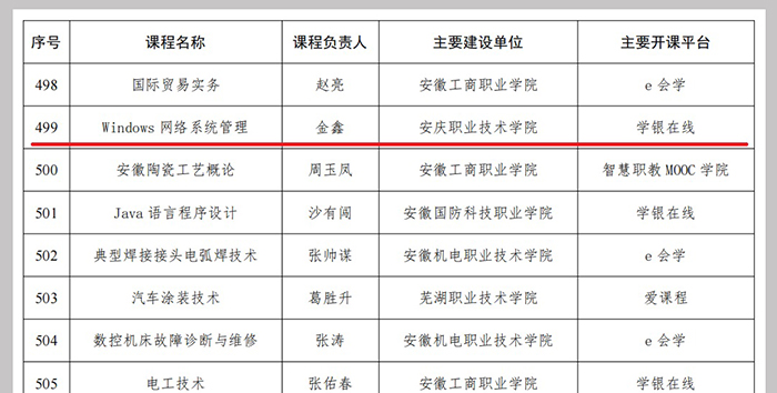 12月15日,教育部在官方网站发布《关于2022年职业教育国家在线精品课程遴选结果的公示》,由beat365官网金鑫老师主持申报的《Windows网络系统管理》课程入选2022年职业教育国家在线精品课程,取得了beat365官网在国家精品课程建设上的重要突破。