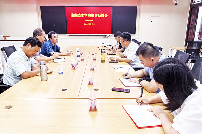 为充分发挥督导作用,促进教学质量提升,9月19日下午,信息技术学院在2号教学楼206教室召开了教学督导反馈会。校督导专家陈兆著、陈再高、吴跃虎出席反馈会,信息技术学院院长疏国会、全体专业建设负责人、教学管理部门负责人参加会议,会议由信息技术学院副院长熊祖涛主持。