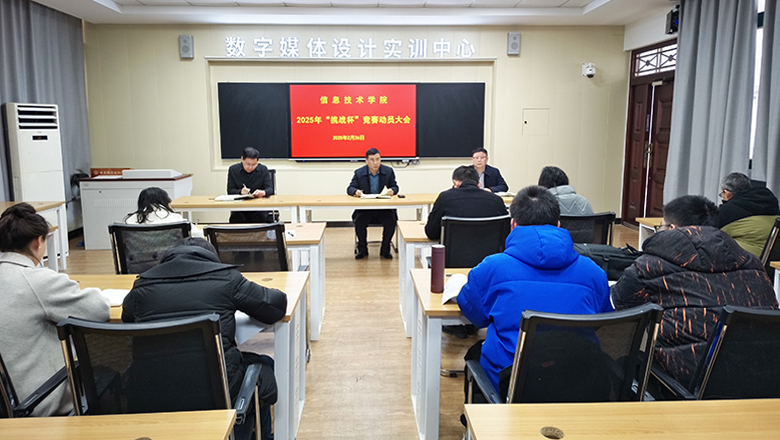 为激发大学生创新活力,提升学生实践能力,营造良好的校园科创氛围,信息技术学院于2月26日召开2025年“挑战杯”竞赛动员会。学院主要负责同志、专业教师代表共商赛事,拉开了备战的序幕。