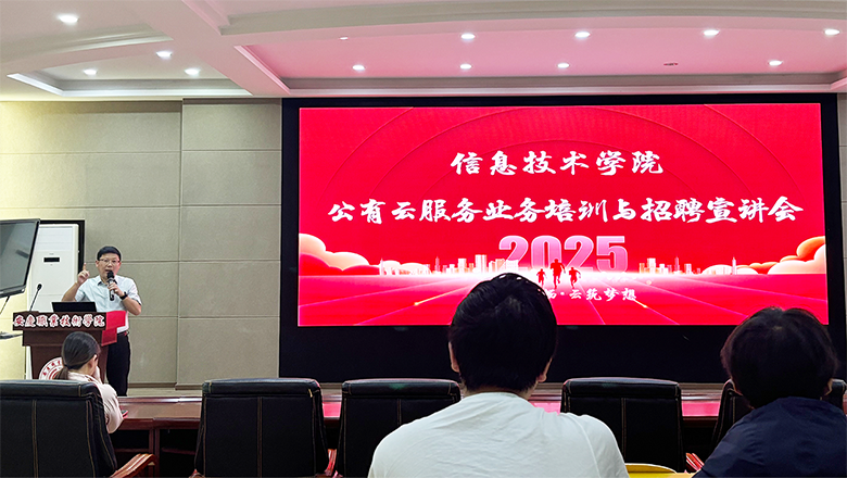 2025年5月14日,订单班合作企业安庆安畅网络科技有限公司走进beat365官网,在2号教学楼信仰报告厅成功举办公有云服务业务培训暨岗位招聘答疑会。活动吸引了来自计算机网络技术、计算机应用技术等专业的90余名学生参与。信息技术学院党总支副书记陈富汉主持活动。