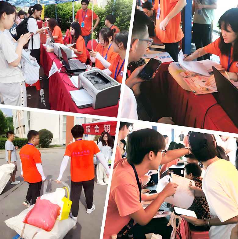 迎新期间,校园氛围热烈。宿舍楼前悬挂迎新横幅、设置醒目指示牌;学校特设一站式报到服务点,新生可一次性完成身份核验、学费缴纳、宿舍分配等手续,大幅提升效率。信院志愿者身着统一橙色服装,热情帮新生搬运行李、答疑解惑,耐心介绍校园环境、生活设施及学习资源,助力新生快速适应新的学习生活。信念新媒体工作室同学们热情采访了新生及家长,了解报到情况,记录入学瞬间。