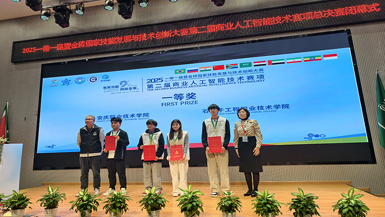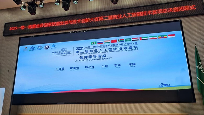 11月13日至16日,2025一带一路暨金砖国家技能发展与技术创新大赛之第二届商业人工智能技术赛项总决赛在成都工业职业技术学院成功举办。来自中国、孟加拉国、哈萨克斯坦、泰国、阿富汗、苏丹共和国、加蓬、喀麦隆、印度尼西亚、巴基斯坦、新加坡、科特迪瓦12个国家的225名选手参与竞赛。经过激烈比拼,beat365官网陈小祥、王艳老师指导的王丛丛、程一鸣、王丽同学获得一等奖,陈小祥、王艳老师获得优秀指导教师称号,学校获优秀组织奖。