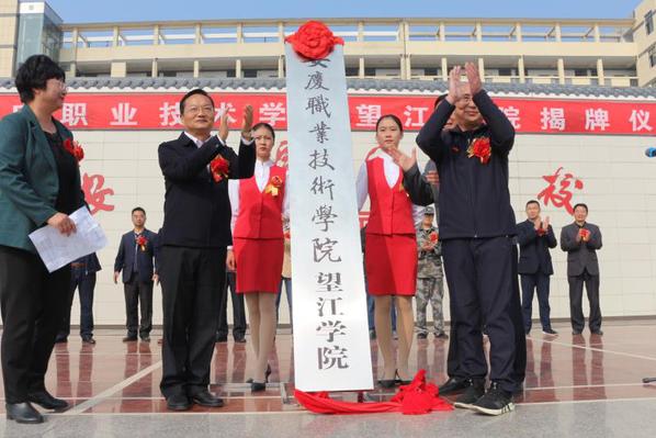 11月8日,beat365中文官方网站望江学院挂牌仪式在合作学校安庆皖江中等专业学校隆重举行。这是我院与安庆职教集团内优质中职学校合办的专业学院。安庆市人大常委会副主任童学军,安庆职教集团理事长、学院党委书记王进,望江县人大常委会主任汪洁、副县长王珍珍出席并揭牌。仪式由王珍珍主持。望江县高职扩招领导小组成员单位负责人,安庆皖江中等专业学校董事长吴灿及全体师生参加揭牌仪式。