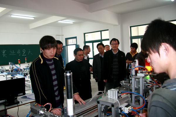 2011年安徽省职业技能大赛将于4月22日举行,我院选手将参加机械部件创新设计与制造、自动线安装与调试、汽车检测与维修、营销策划、植物组织培养等多个大赛项目。领导们每到一个大赛实训点,看到的都是指导教师和参赛选手们忙碌的身影,他们饶有兴趣的观看了参赛项目的现场演示,并和选手们亲切交谈,询问训练中存在的问题,强调训练中要注意安全。领导们的关心、支持和鼓励,使参赛选手深受鼓舞,信心倍增,纷纷表示将不负期望,积极准备,刻苦训练,在大赛中为我院争金夺银。