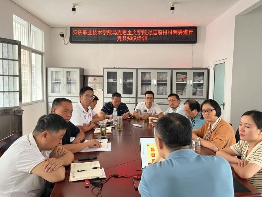 马克思主义学院朱松节教授对店前村党总支和三个支部的支委成员和驻村工作队进行了党务理论知识和实践能力培训。他系统讲解了基层党务工作基本知识,重点阐述了党支部的机构设置、基本任务、工作机制、组织生活、民主建设等内容,旨在充分发挥基层党组织战斗堡垒作用,推进基层党建工作规范化标准化,推进基层党建工作提质增效,把学习成果转化为实实在在的工作举措。