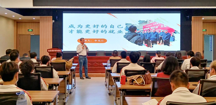 讲座上,李克让运用风趣幽默的语言,结合学生身边的榜样、生动的案例、详实的数据,深刻分析了“你为什么来上学”“你想成为什么样的人”“为什么就业”“怎么去择业”“怎样才能高质量就业”五个方面的问题,帮助学生树立正确的择业观与就业观。