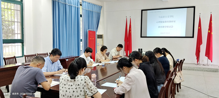 2024年7月3日上午,马克思主义学院开展心理健康教育教学研讨会。校党委委员,组织部长高润霞到会指导。教务处、学生处有关负责同志陪同。心理健康教育课程全体授课教师参加会议,会议由马克思主义学院院长余锋主持。