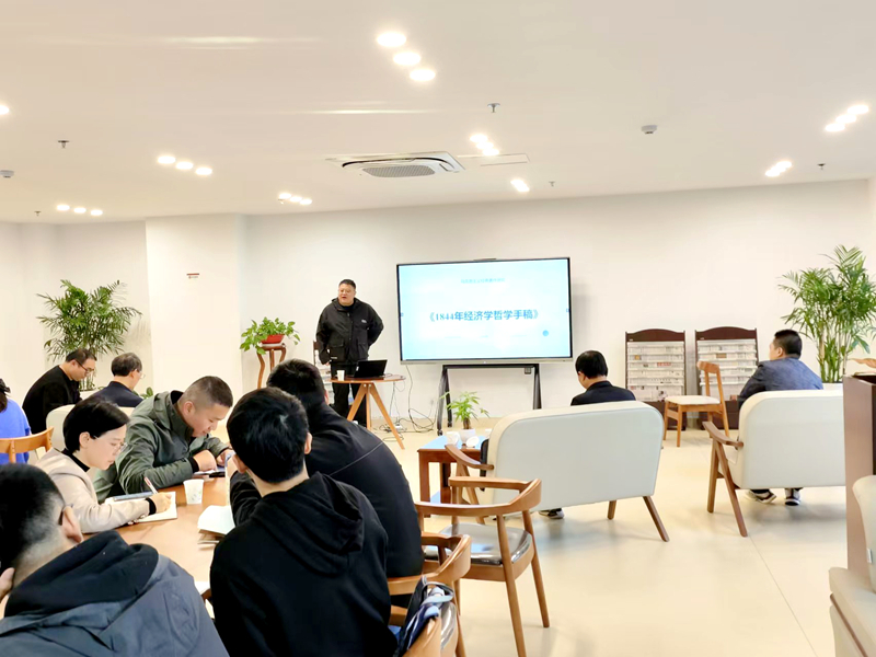 随后由安庆师范大学马克思主义学院刘倬帆博士主讲《1844年经济学哲学手稿》。刘博士介绍《1844年经济学哲学手稿》是一部在马克思思想发展史上具有承上启下地位的重要著作。在这部手稿中,马克思以人本学唯物主义为基础,以人的类本质的对象化与异化的扬弃为理论框架,第一次实现了哲学、政治经济学和共产主义理论的有机结合,是马克思对涉及哲学、政治经济学和共产主义理论的各种历史文献和思想观点进行系统研究和批判的最初成果。《1844年经济学哲学手稿》由三个独立又相互联系的部分组成,第一手稿批判了资本主义的工资理论、地租、异化劳动、无产阶级革命等,其核心思想是异化劳动理论。第二手稿的现存部分对私有财产的关系做了考察,仅占原手稿的1/10左右。第三手稿研究了私有财产的本质、共产主义需要、生产和分工、货币等。刘博士主要介绍了异化劳动理论、共产主义理论、对黑格尔哲学的批判三方面的主要内容,重点讲解了马克思如何从劳动异化理论出发说明劳动是人的本质。