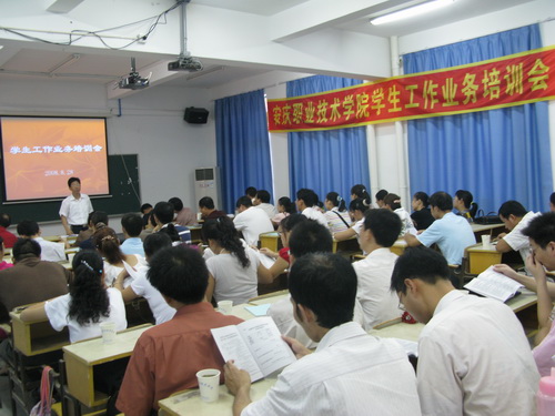 8月28日上午,在实训楼209多媒体教室,我院举办学生工作业务培训会。我院全体辅导员、班主任,各系(部)分管学生工作负责人、团总支书记及学生处全体工作人员共70余人参加了会议。