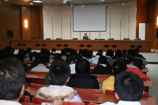 11月27日晚,建筑工程系主任、副教授徐北平老师在院图文信息中心一楼大报告厅做“与大学生谈文学”专题讲座。从写作到审美,从古典到现代,从社会到自身,徐主任旁证博引,纵横捭阖,用幽默的语言、生动的案例为听课师生烹制了一份丰盛的文化大餐,也赢得了阵阵掌声。