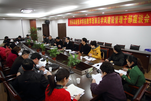 2013年320,我院在行政楼四楼大会议室召开教学改革与学风建设管理干部座谈会。院长孙晓峰,副院长毕明生,院党委委员、办公室主任吴登明出席会议。教务处、学生处、组织人事处、图文信息中心、实验实训中心相关负责同志和来自全院七个系部的14名管理干部代表参加了会议。