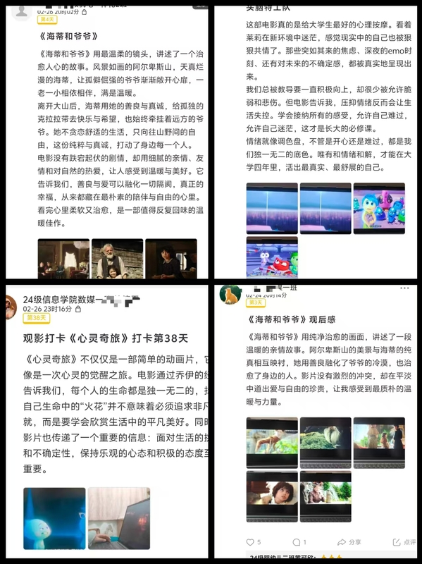 “当主角终于实现梦想却发现不过如此时,我突然明白了享受当下的意义。”观影后的分享环节,同学们争相“晒出自己的感悟”,从电影情节聊到人生感悟。心理老师适时引导:“就像电影里说的,火花不是人生目标,而是想要生活的那一刻。”这样的光影分享持续了整个假期,成为连接心灵的温暖纽带。