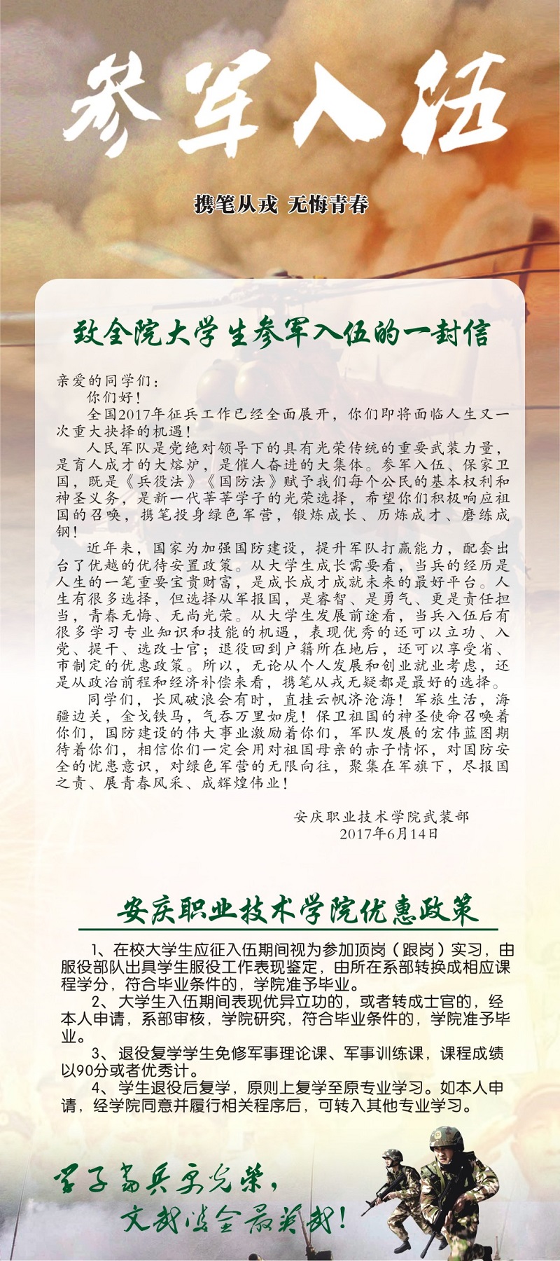 致全院大学生应征入伍的一封信
