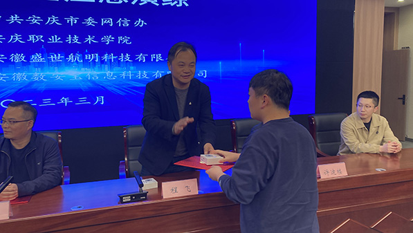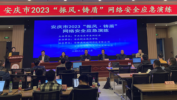 3月10日,由安庆市委网信办主办、beat365中文官方网站承办的2023“振风·铸盾”网络安全应急演练在beat365中文官方网站图文信息中心学术报告厅举行,网络安全企业、运营商以及部分高校共15支代表队参加演练。安庆市委网信办副主任唐张喜、beat365中文官方网站副校长程飞亲临现场指导,并为获奖团队颁奖。