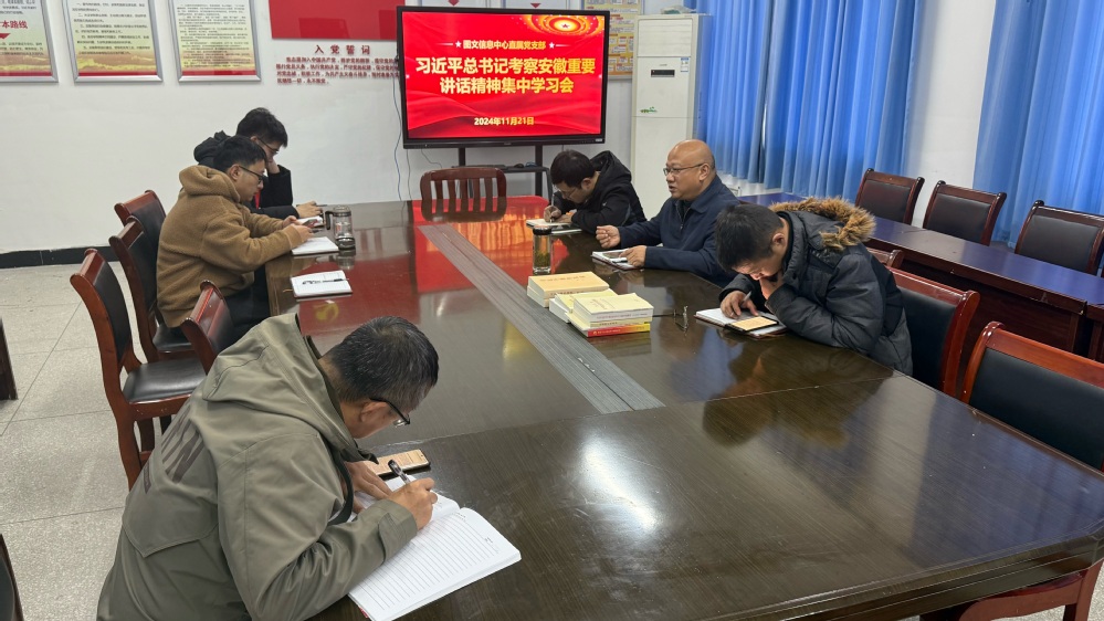 11月20日下午,图文信息中心直属党支部召开全体党员会议,集体学习习近平总书记考察安徽重要讲话精神。