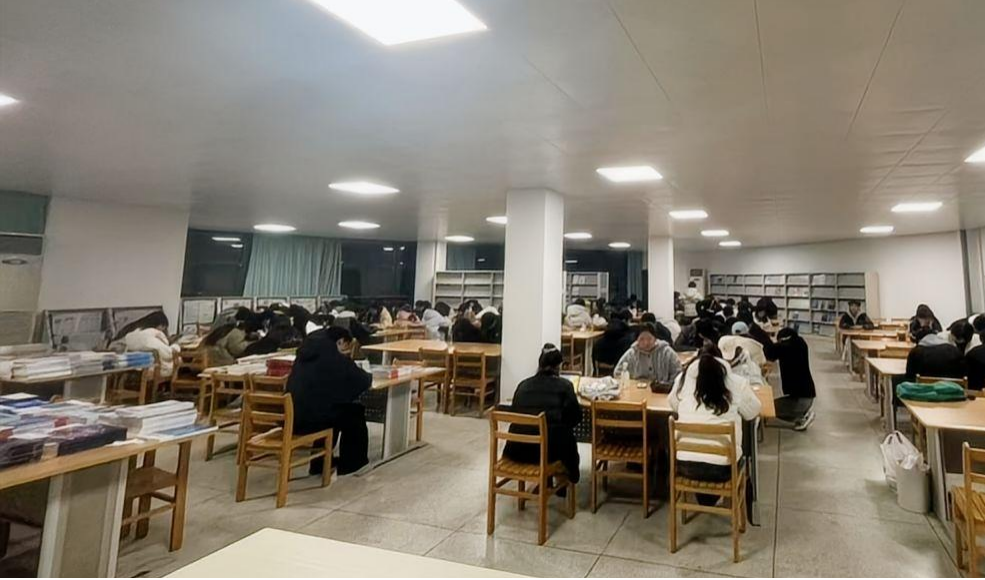 夜幕降临,晚自习的铃声准时响起,期刊阅览室瞬间被点燃。同学们如同逐光的飞鸟,抱着厚重的书本、崭新的笔记本,脚步匆匆,急切地奔赴这片知识的殿堂。他们眼神中闪烁着求知的渴望,一进入阅览室,便迅速寻找心仪的座位。不过片刻,原本空旷的座位就被占满,过道里也挤满了人,有的同学甚至只能在角落里席地而坐,却丝毫不减学习的热情。在这里,每一个角落都弥漫着浓厚的学习氛围,沙沙的书写声、轻轻的翻书声,交织成一曲美妙的学习乐章。