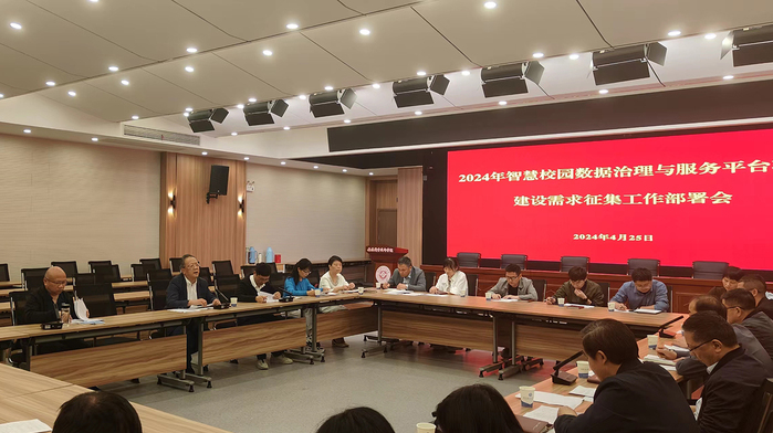 图文信息中心负责人详细介绍了2024年智慧校园数据治理与服务平台项目建设情况;通报图文信息中心对现有系统平台摸底统计的情况;对智慧校园数据治理与服务平台项目建设需求征集工作进行部署。