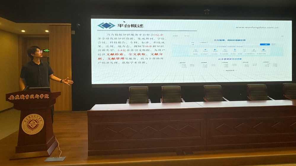 杨长江以“2025年超星数字资源培训讲座”为主题,全面介绍了超星数字资源体系,从超星移动图书馆的使用与资源服务,到超星读秀的图书整合、图书全文搜索,再到超星期刊的使用,让师生深入了解了超星资源的多元与实用。王慧芳以“巧用万方数据 畅享学术资源”为主题,介绍了学术论文的写作流程、论文选题和论文构成部分,重点讲解了万方知识服务平台和万方科研工具,并通过案例演示了如何应用。现场气氛活跃,互动环节学生踊跃回答问题,并获赠小礼品,讲座取得了良好的效果。