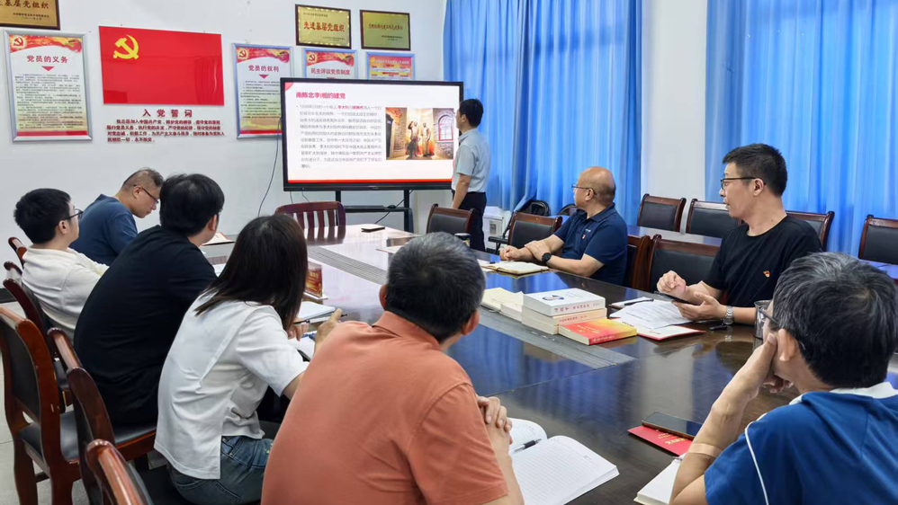 支委委员陈伟用生动鲜活的语言,以讲故事的宣讲形式,讲述了《南陈北李|相约建党》、《吃水不忘掘井人》、《半条棉被》、《腰缠万贯的讨米人》、《真理的味道》等5个历经岁月却仍刻骨铭心的历史故事,为全体党员带来一场有深度、有温度、接地气的“红色文化课”。
