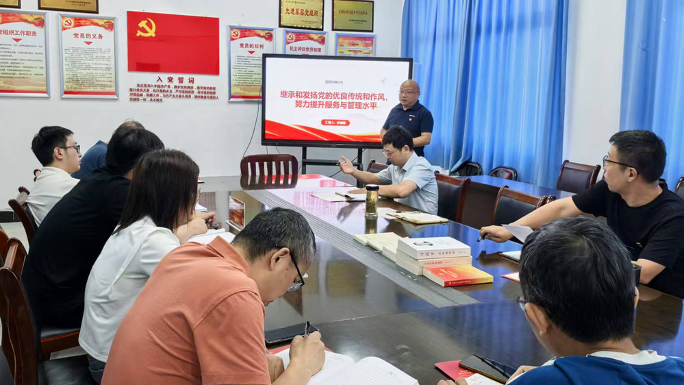 支部书记许迪楼为全体党员上了一堂精彩的党课,他以“继承和发扬党的优良传统和作风,努力提升服务与管理水平”为主题,阐释了党的作风建设的重要性、党的三大优良作风、优良作风的根源是理想信念、党的光荣传统和优良作风的体现等内容。他还重点讲解了对党忠诚、革命理想高于天、理论联系实际、密切联系群众、批评与自我批评、实事求是、艰苦奋斗、纪律严明、重视调查研究、独立自主等党的优良传统和作风。他希望,全体党员要结合图文信息中心职能,将党的作风建设融入岗位实践,在工作中继承和发扬党的优良传统和作风,努力提升服务与管理水平。党课内容丰富、深入浅出,党员们专心听讲、认真领会,并交流了心得体会,对党的光荣传统和优良作风有了更加深刻的理解和认识。