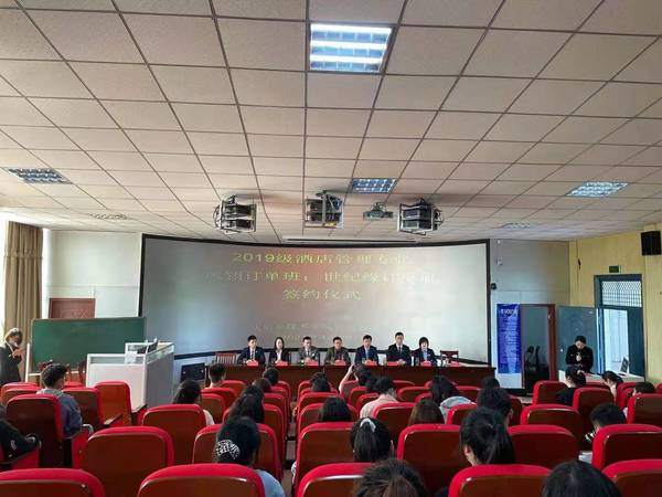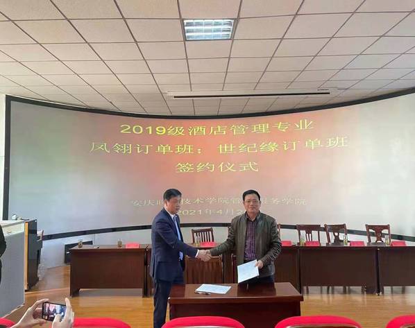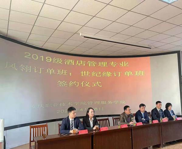 4月28日上午,管理服务学院在3号教学楼216教室举行校企业合作酒店管理专业 “凤翎订单班”和“世纪缘订单班”签约仪式。管理服务学院副院长杨厚松、企业方代表、酒店管理专业部分教师和冠名班全体学生参加了此次签约仪式。仪式由院长助理兼酒店管理专业建设负责人李敏老师主持。