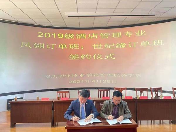 最后,校方代表杨厚松分别与安庆碧桂园凤凰大酒店、安庆世纪缘国际大酒店负责人进行了现场签约。本次订单班的成功签约,为酒店管理专业下一步开展更多的校企联合育人奠定了基础。(文:李敏 图:李光寿等 审核:杨厚松)