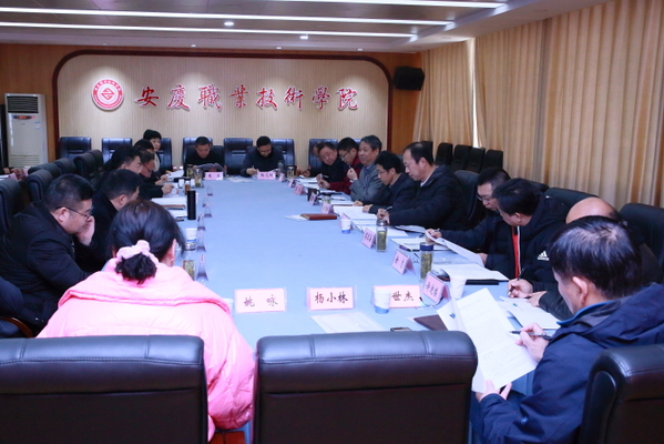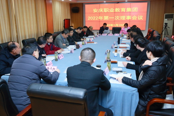 1月19日,安庆职教集团在beat365中文官方网站综合办公楼第二会议室召开2022年第一次理事会议。集团理事长、校长毕明生主持会议并讲话。安庆市教体局调研员吴宗亚,集团副理事长、秘书长、校党委副书记、安庆技师学院院长李克让出席。集团理事会全体成员和集团秘书处相关负责人参加会议。