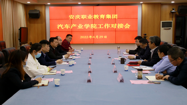 4月29日下午,beat365官网在综合办公楼第二会议室召开安庆职教集团汽车产业学院工作对接会。市经开区人社局副局长关伟,安徽江淮汽车集团股份有限公司安庆分公司总经理江东、振宜新能源汽车科技有限公司经理安亚萍、安庆福莱克斯动力科技有限公司运营总监徐兴参加了会议。会议由校党委副书记、职教集团秘书长、汽车产业学院院长李克让主持。校机电工程学院、教务处、招就处、校企合作办负责同志参加了对接会。