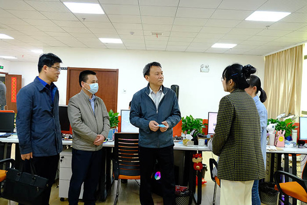 在筑梦新区云霁电商公司,正在该公司实习的孙文芳老师向童宏葵汇报了驻企实践的收获和感想。她感谢学校为教师们提供了到企业实践锻炼的机会,来到企业后,不但丰富了专业知识,提高了实践技能,还能够把企业鲜活的案例带进课堂,提升教育教学质量。自己特别珍惜这次驻企实践的机会,建议学校今后轮流安排教师特别是年轻教师到企业锻炼实践。随后,童宏葵一行在大观区区委常委、区委办主任、统战部长余红松的陪同下,来到安庆跨境电商产业园中通快递安庆分拨中心、安徽金枪鱼电子商务有限公司,深入工作平台,详细了解企业运营情况,并亲切与在这里参加实践锻炼的年轻教师余海凤、王依婷交谈,仔细了解她俩的实践情况。调研中,童宏葵勉励三位老师说,学校将你们派到企业实践,走出课堂,是培养“双师型”教师的重要举措,你们要倍加珍惜,多向企业学习,要将理论知识和实践相结合,避免“在黑板上开拖拉机”。