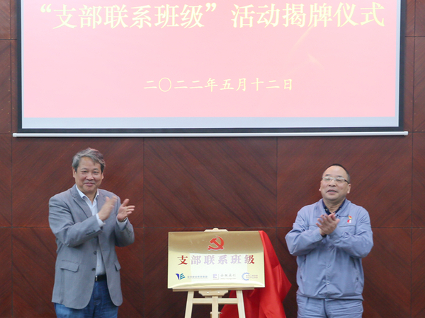 党委副书记李克让和盈创公司党委书记江林胜为机电工程学院党总支开展的“支部联系班级”活动揭牌。