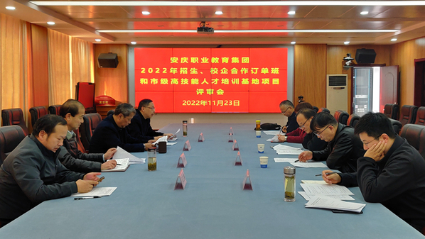 11月23日,安庆职业教育集团2022年度招生、校企合作订单班和市级高技能人才培训基地项目评审工作在beat365中文官方网站顺利举行。