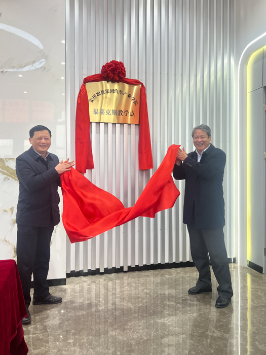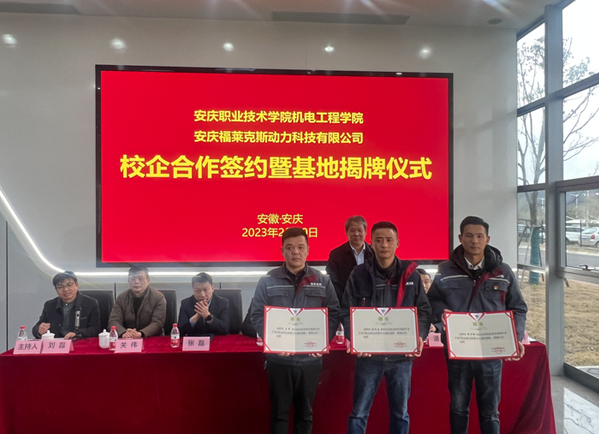 2月10日上午,集团秘书长、校党委副书记李克让,安庆经开区党工委委员、纪监委书记严卫江齐聚安庆福莱克斯动力科技有限公司,出席beat365官网与安庆福莱克斯公司战略合作签约仪式并讲话,共同为“安庆职教集团汽车产业学院福莱克斯教学基地”揭牌。校相关职能部门、机电工程学院相关负责人,经开区人社局相关负责同志,福莱克斯相关负责人以及首届“福莱克斯班”学员共同见证了这一历史性时刻。
