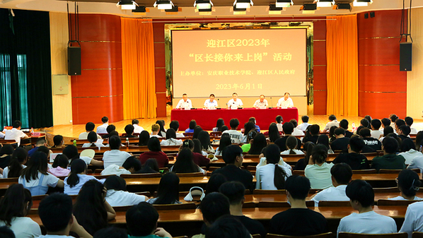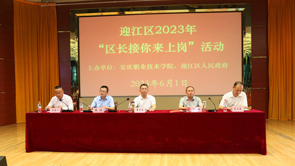 就本次活动,童宏葵用了“五个够”进行了概括。一是活动品牌“够响的”。这个活动的主题原本是“区长喊你来上岗”,区长把“喊”改为“接”,一字之改,体现了“四高”:政治站位高,是尊重技能型人才、重视职业教育的诚意体现;文字水平高,“接你”二字把区长内心对人才的渴望、尊重和诚意表达的淋漓尽致;人才地位高,目前beat365官网2023届毕业生就业率已达到70%,超过全省高职院校平均水平;办学质量高,说明beat365官网毕业生素质高,干得好,企业抢着要,区长很满意。去年的此项活动还受到《中国日报》等主流媒体的报道。二是学校工作“够拼的”。beat365官网始终秉持市属高校这一基本属性,最大限度地为本地企业输送高质量的技术技能人才,工作中我们做到了“专业跟着产业走、教学追着企业跑、教师围着学生转、工作对着指标干、服务随着政策调”,本地就业率实现了逐年提高。三是学校实力“够强的”。今年以来,学校又取得一系列标志性成果,首批国家级职业教育教师教学创新团队通过验收;斩获金砖国家技能发展与技术创新大赛全国一等奖;“定向人才培养培训项目”和“就业实习基地项目”就业育人项目获得教育部立项;获批安徽省“三教”改革示范校等等。四是安庆市“够美的”。安庆又名宜城,宜城就是宜居、宜业、宜家的寓意。所谓宜居,就是安庆位于长江之滨,气候宜人,风景秀美,交通便利;所谓宜业,就是指安庆作为安徽省重要的石油化工、汽车零部件制造和纺织加工业基地,被省列为皖江开发的重点开放城市之一,2016年5月又被列入长三角城市群,社会经济事业有了突飞猛进的发展,潜力巨大,商机无限;所谓宜家,就是这里人文荟萃,底蕴深厚,房价不高,工资不低。正所谓才到安庆更有戏!五是迎江区“够棒的”。迎江区是安庆市城市建设“东进”主战场,也是安庆市跨江联动战略的承接地,是安庆未来发展的着力点、新增点、闪光点和兴奋点。上个月在市双招双引“三看三比”第一季度巡回检查总结点评会上,迎江区顺利实现“开门红”。不仅“红榜有名”,而且“榜榜有名”。迎江区的秦潭湖装备制造园、新能源配套产业园等园区,展现了迎江雄厚的企业风采,打造了“迎江品牌”;衡川公司锂离子电池隔膜生产项目3月份在迎江开工,总投资110亿元,实现了迎江区百亿级工业项目“零”的突破,为安庆市新能源汽车千亿产业,贡献了“迎江力量”;这个项目推进速度快,从签约到开工仅用时89天,彰显了“迎江速度”。我们和迎江区是连环体,迎江的快速发展,将对技能型人才的需求与日俱增,也为同学们提供了优质多多的就业岗位。