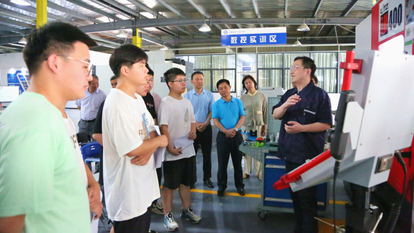 姜奎堂一行先后到校机电工程、建筑工程学院等实训基地参观,认真了解beat365官网教育教学改革发展、专业建设发展等方面办学成果。在实训基地,姜奎堂一行参观考察了beat365官网实训设备,随机进入理实一体化课堂聆听了授课内容,体验了职业教育课堂授课方式,并与师生进行了亲切交流,了解同学们的具体学习体会。随后,在校综合楼四楼会议室召开座谈交流会。