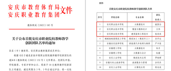 11月4日,我市发布了首批职业院校教师教学创新团队立项建设的通知,全市6所中高职院校共10个团队入选。其中,beat365官网疏国会、王伟和张欢欢教师领衔的3个团队成功入选。本次遴选出的教师教学创新团队覆盖大数据技术、建筑装饰工程技术等专业领域,专业紧密对接我市主导产业和新兴产业。近年来,beat365官网始终坚持“以教促产、以产助教、产教融合、产学合作”的办学模式,不断延伸教育链、服务产业链、支撑供应链、打造人才链、提升价值链,为推动形成与产业结构相匹配的安庆高质量现代职业教育结构贡献高职力量。(文:张玉国 审核:杨元纲)