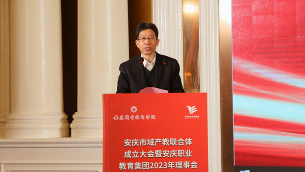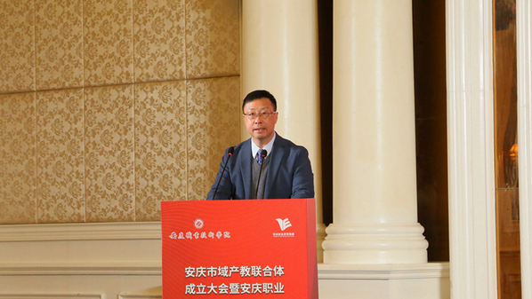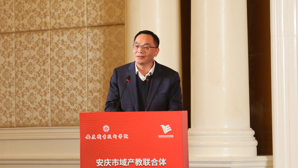 成立大会上,市教育体育工委副书记张复双宣读了安庆市人民政府《关于组建安庆经济技术开发区产教联合体和安庆高新技术产业开发区产教联合体的通知》文件。市人社局副局长方敏,安庆高新区管委会副主任钱友明,环新集团党委副书记、副总经理蔡向东分别代表政府职能部门、园区管委会、牵头企业致辞,对市域产教联合体的成立表示祝贺,对联合体下一步工作提出了意见建议。